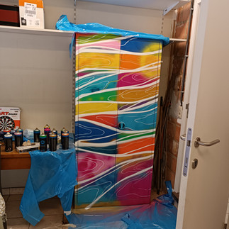 Armés de bombes de peinture de toutes les couleurs, ils ont laissé libre cours à leur créativité, métamorphosant ainsi les armoires sombres du garage en toiles d'expression.